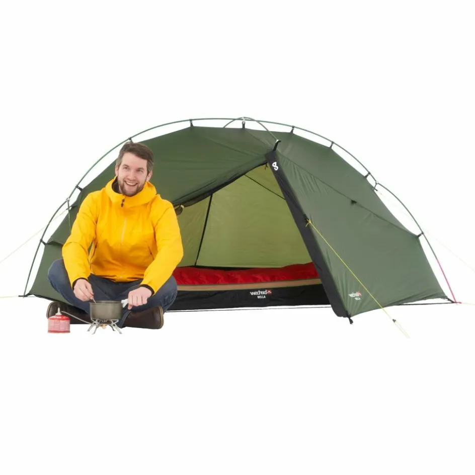 Die Besonderheit am Bella sind sowohl das geringe Gewicht als auch das simple Handling bei guter Stabilität. Es bietet einer Person großzügig Platz, kann aber auch von zwei Personen mit etwas Körperkontakt genutzt werden. In der großzügig bemessenen Apsis findet all deine Ausrüstung problemlos Platz.