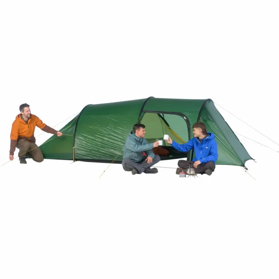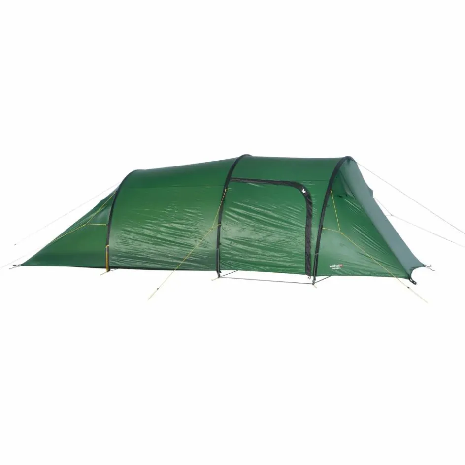 Das Gestänge ist außenliegend und wird durch farbcodierte Gestängekanäle geschoben. Das Innenzelt ist eingehängt und wird in einem Rutsch mit dem Außenzelt aufgebaut. Die nach hinten abfallende Form ist aerodynamisch und entsteht durch einen kürzeren Gestängebogen. Diese abgeflachte Seite wird bei Sturm in den Wind gestellt, um wenig Windangriffsfläche zu bieten.