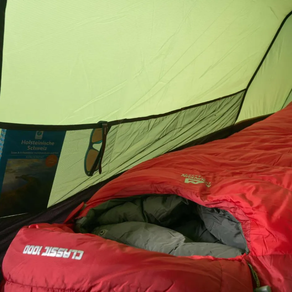 Du bist kein Hüne? Auch kein Problem. Die zusätzliche Ecke im Innenzelt kann auch ansonsten gut genutzt werden. Bekleidung und Ausrüstung kannst du hier geschützt vor Schmutz und Nässe platzieren, ohne dass sie im Weg liegt.