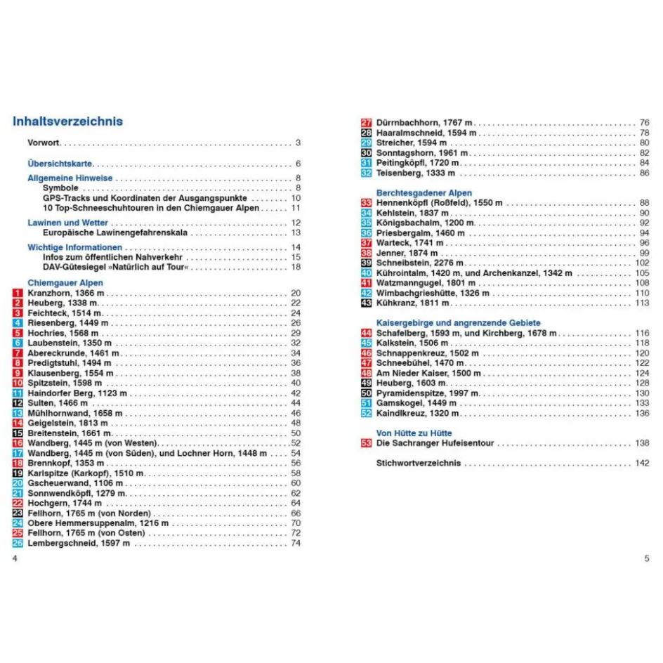 53 Touren, 53 Höhenprofile, 53 Tourenkärtchen im Maßstab 1:50.000 und 1:75.000, zwei Übersichtskarten im Maßstab 1:350.000 und 1:600.000