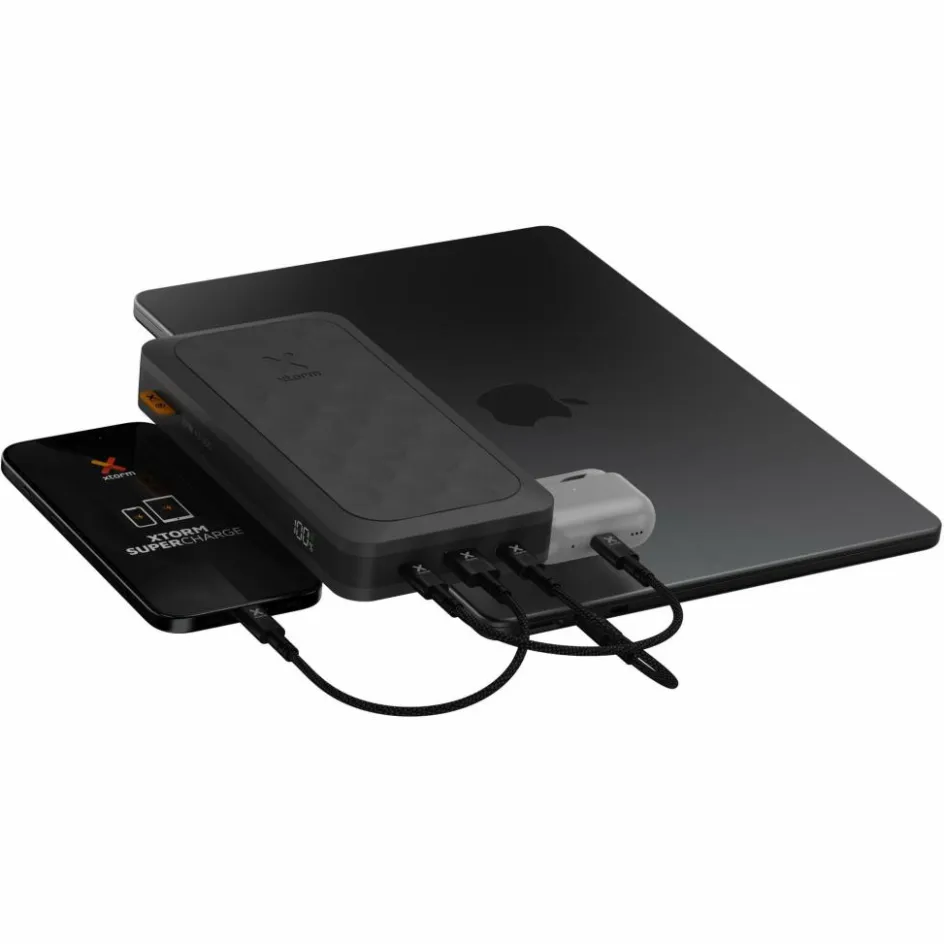 Die handliche Powerbank bietet bis zu 67 W Power am USB-C-Ausgang. Insgesamt stehen drei Anschlüsse zur Verfügung: Neben dem leistungsstarken 67-W-USB-C-PD-Anschluss gibt es einen weiteren 27-W-USB-C-Anschluss und einen 18-W-USB-A-Anschluss. Alle drei Ladeplätze können einzeln oder gleichzeitig genutzt werden.