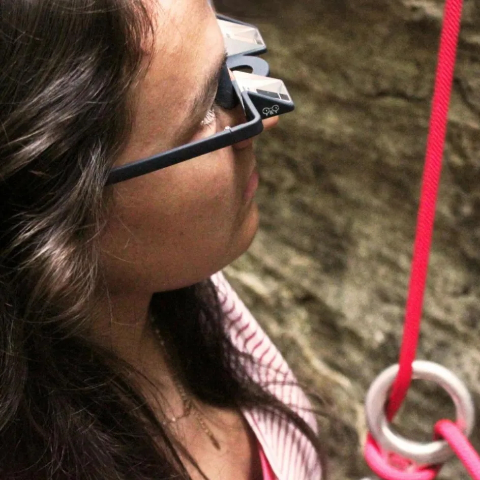 Ihre Prismen lenken deinen Blick die Wand hinauf, sodass du deinen Kletterbuddy jederzeit im Blick hast.